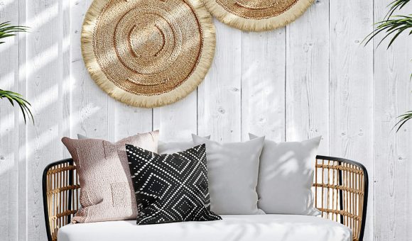 Create a Modern Bohemian Home Office with plants and geometric prints